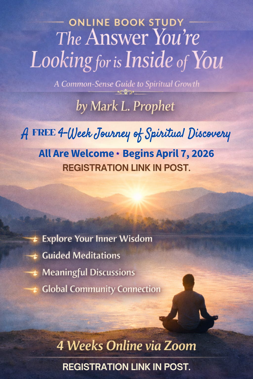 We’re hosting a 4-Week Online Spiritual Book Study exploring the powerful insights in The Answer You’re Looking for Is Inside of You by Mark L. Prophet.